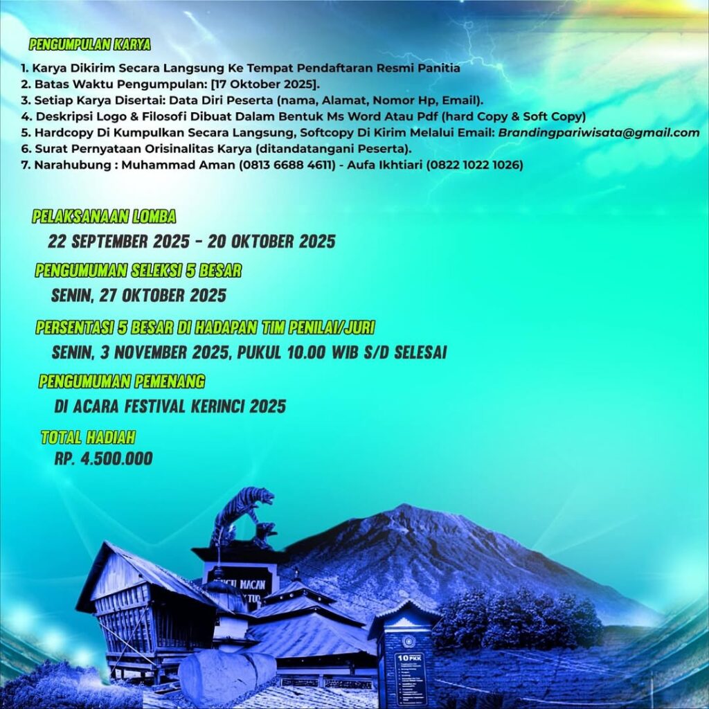 Ajang ini menjadi momentum penting dalam melahirkan identitas visual baru yang akan menjadi wajah Kabupaten Kerinci di mata dunia.
