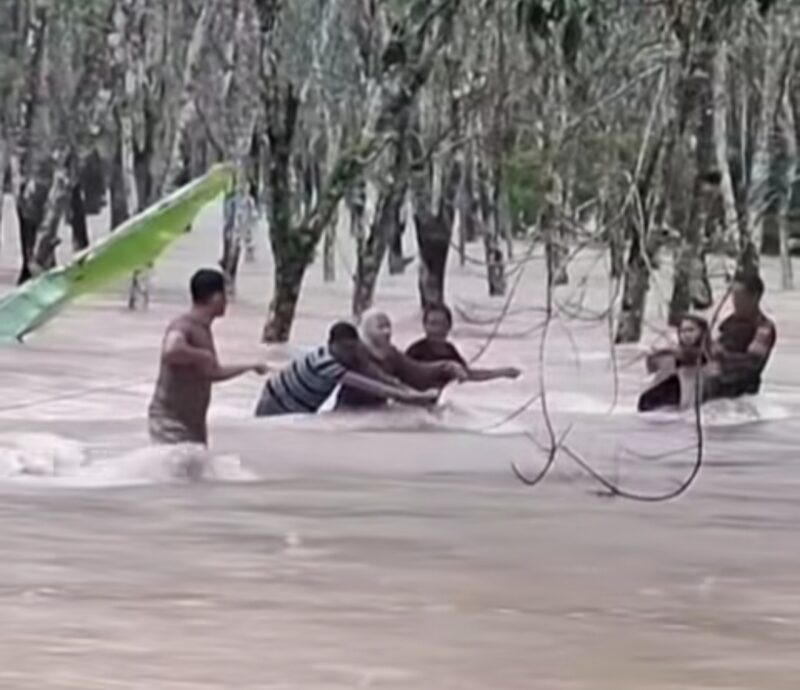 Koransakti.co.id- Babinsa Desa Karang Jadi, Sertu Iwan Gunarto dari Koramil 403-04/Belitang Kodim 0403/OKU, berhasil mengevakuasi warga yang terjebak di dalam mobil akibat derasnya arus banjir di Desa Karang Jadi, Kecamatan Belitang III, Kabupaten OKU Timur, Kamis (8/1/2026).