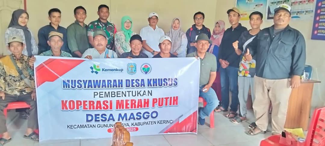 Koran Sakti.co.id, Gunung Raya- Babinsa Koramil 417-02/Gunung Raya, Sertu Mashuri, menghadiri kegiatan rapat pembentukan Koperasi Desa Merah Putih di Kantor Desa Baru Lempur Kecamatan Gunung Raya, Kabupaten Kerinci.