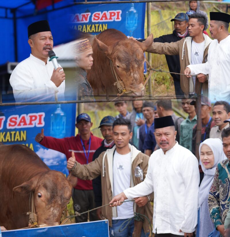 Koran Sakti.co.id, Kerinci- Bupati Kerinci, Monadi, S.Sos., M.Si., menyerahkan secara simbolis Bantuan Kemasyarakatan dari Presiden Republik Indonesia, Prabowo Subianto, berupa satu ekor sapi kurban seberat 926 kilogram. Penyerahan dilakukan dalam rangka menyambut Hari Raya Idul Adha 1446 Hijriah, bertempat di Desa Sungai Gelampeh, Kecamatan Gunung Kerinci, pada Sabtu, 7 Juni 2025.
