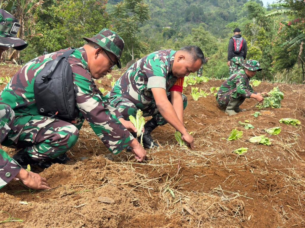 koransakti.co.id, Sungai Penuh  – Komandan Satuan Tugas (Dansatgas)  TMMD Ke-126, Letkol Inf Eko Budiarto S.I.P,M.I.P  berserta Anggota dan warga lakukan penanaman sayur-sayuran di lahan milik warga setempat. Sabtu (25/10/25)