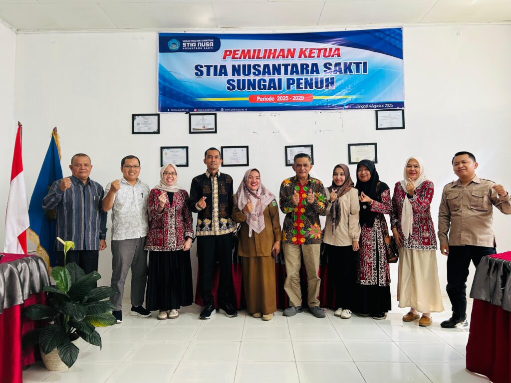 Koran Sakti.co.id, Sungai Penuh- Pemilihan Ketua Sekolah Tinggi Ilmu Administrasi Nusantara Sakti (STIA-NUSA) Sungai Penuh untuk periode 2025–2029 usai digelar pada Senin, 4 Agustus 2025.