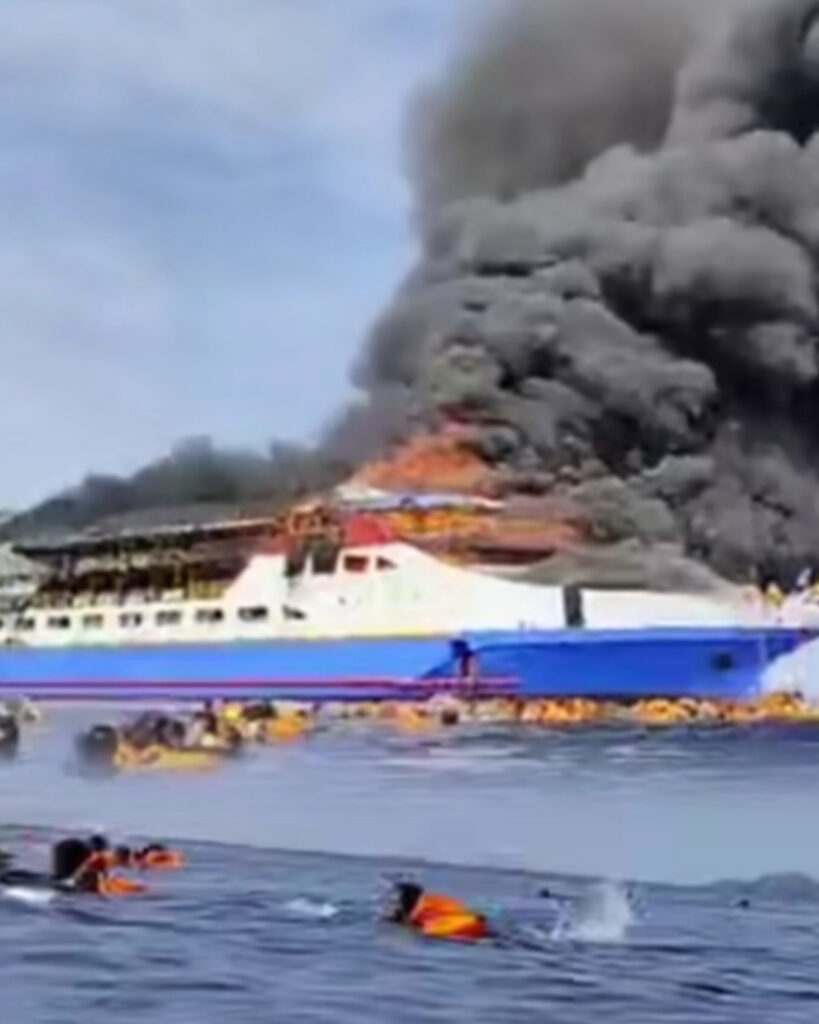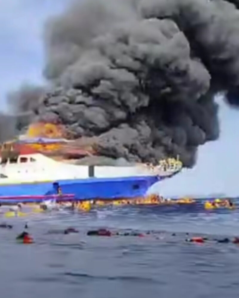 Koran Sakti.co.id, Sulawesi- Kapal Motor (KM) Barcelona V yang berlayar dari Pelabuhan Kabupaten Kepulauan Talaud menuju Pelabuhan Manado terbakar di sekitar perairan Pulau Talise, Kabupaten Minahasa Utara, Sulawesi Utara, Minggu siang (20/7).