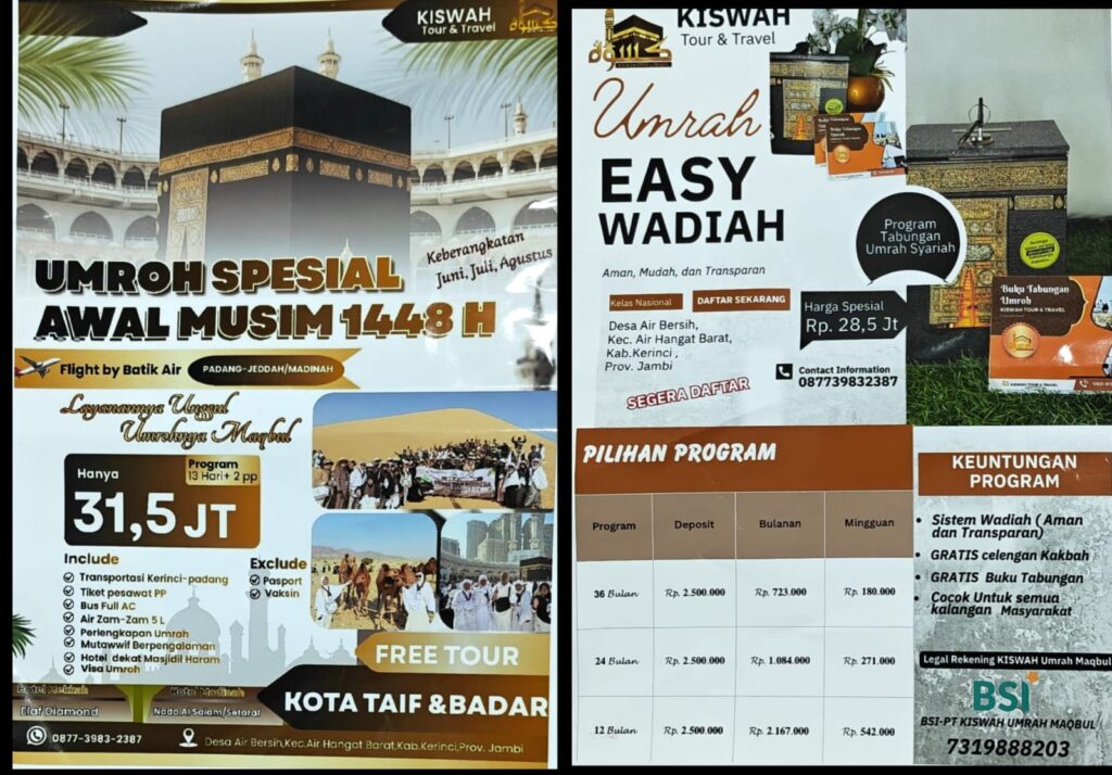 “Kiswah Tour & Travel juga menghadirkan program Umrah Easy Wadiah. Program ini kami rancang sebagai solusi memudahkan masyarakat dalam merencanakan perjalanan ibadah umrah dengan lebih ringan dan terjangkau.
