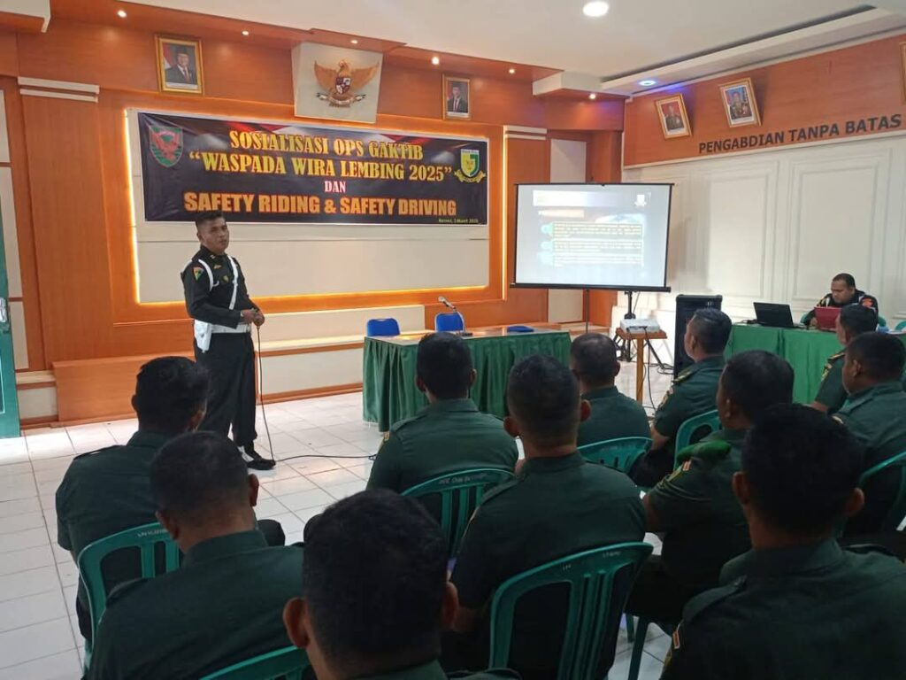 Koran Sakti.co.id, Kerinci– Anggota Kodim 0417/Kerinci mengikuti sosialisasi Operasi Penegakan Ketertiban (Gaktib) dan Safety Riding yang diselenggarakan oleh Subdenpom Persiapan Kerinci dengan pemateri Peltu Eddy Anwardin Bati Gakkumplintatib bertempat di Aula Makodim 0417/Kerinci, Jalan Jenderal Sudirman No 08 Kota Sungai Penuh, Senin (03/03/2025).
