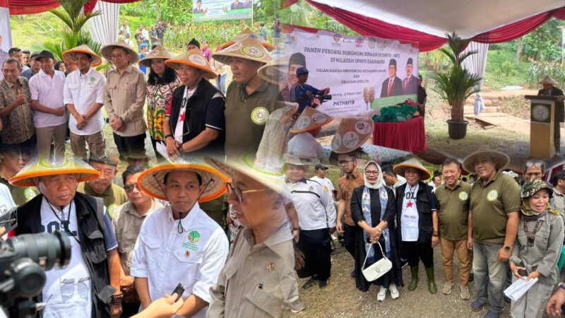 Koran Sakti.co.id, Karawang. – Panen Perdana Sorgum di Wilayah Izin Pemanfaatan Hutan Perhutanan Sosial (IPHPS) Kabupaten Karawang dalam rangka mendukung ketahanan pangan dan program Asta Cita oleh Perkumpulan Kelompok Tani Hutan Mandiri Teluk Jambe Bersatu (PKTHMTB) dan Himpunan Kerukunan Tani Indonesia (HKTI) berlangsung sukses, Sabtu (13/3/2025).