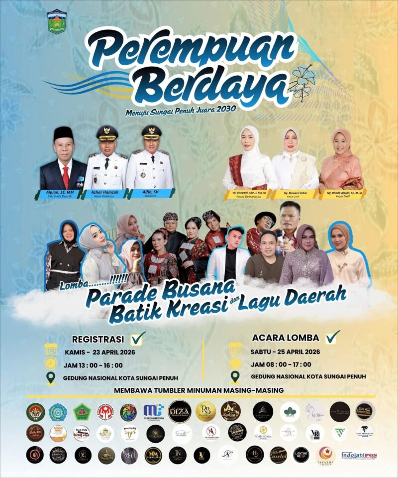 Koransakti.co.id, Sungai Penuh- Semarak kreativitas dan semangat pemberdayaan ekonomi lokal terasa kuat dalam gelaran Parade Batik Kreasi yang akan di selenggarakan Dharma Wanita Persatuan (DWP) Kota Sungai Penuh, Sabtu (25/4/2026) di Gedung Nasional.
