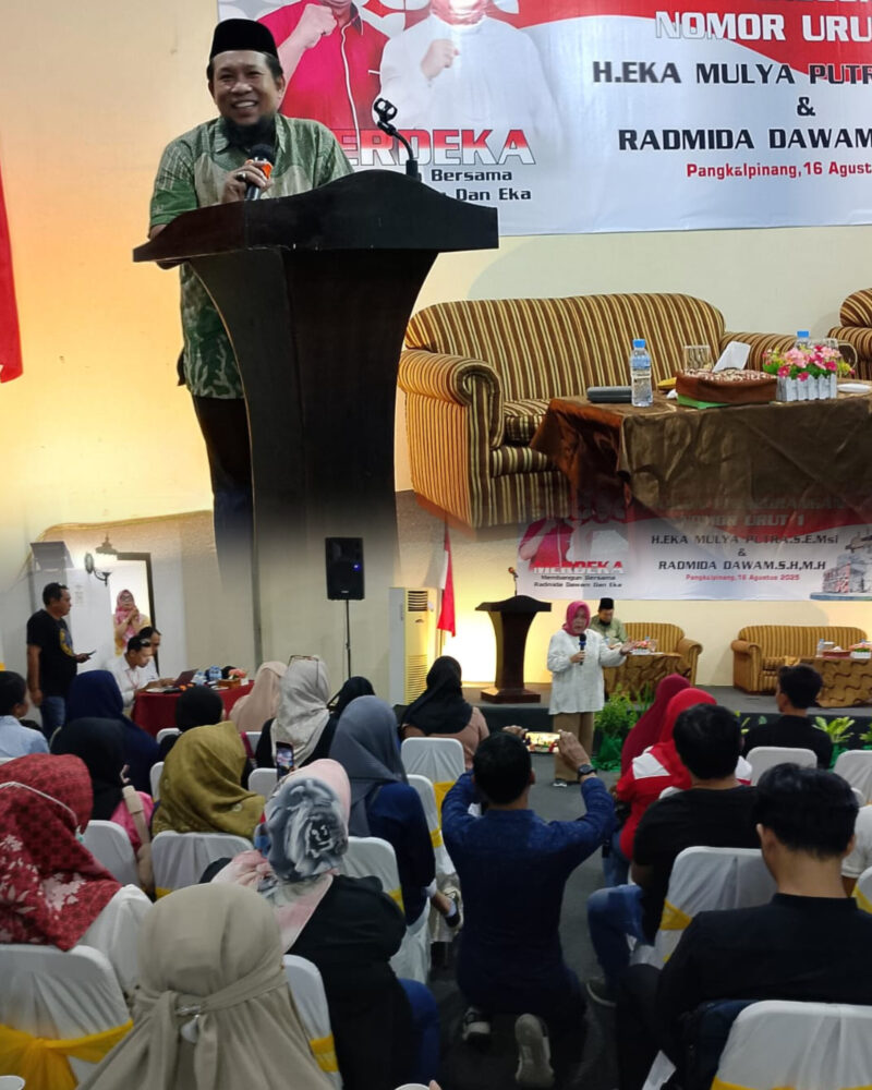 Koran Sakti.co.id, Pangkalpinang– Pasangan calon independen *Merdeka* (Membangun bersama Radmida Dawam dan Eka Mulia Putra) terus mematangkan strategi jelang Pemilihan Kepala Daerah (Pilkada) ulang Kota Pangkalpinang 2025. Sabtu (16/8/2025).