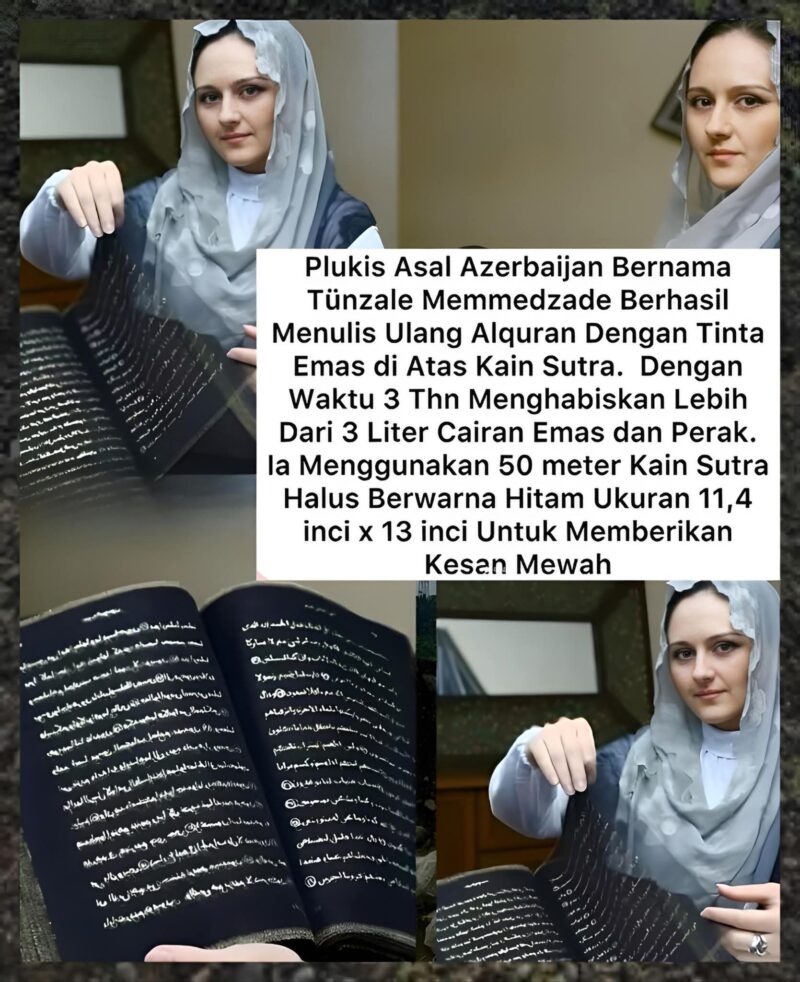 Pelukis Asal Azerbaijan Bernama Tunzale Memmedzade Berhasil Menulis Ulang Alquran Dengan Tinta Emas Di Atas Kain Sutra