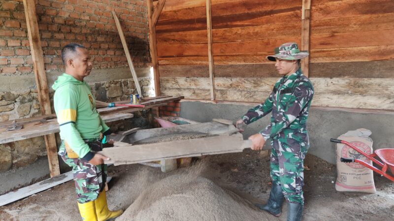 Koransakti.co.id, Sungai Penuh-Satgas TNI Manunggal Membangun Desa (TMMD) ke-126 Kodim 0417/Kerinci Desa Sungai Jernih, Kecamatan Pondok Tinggi, Kota Penuh mengayak pasir untuk memisahkan antara batu kerikil dengan pasir yang halus, hal tersebut guna rehab RTLH warga Desa Sungai Jernih, proses tahap pemlesteran dinding bangunan, Kamis (23/10).