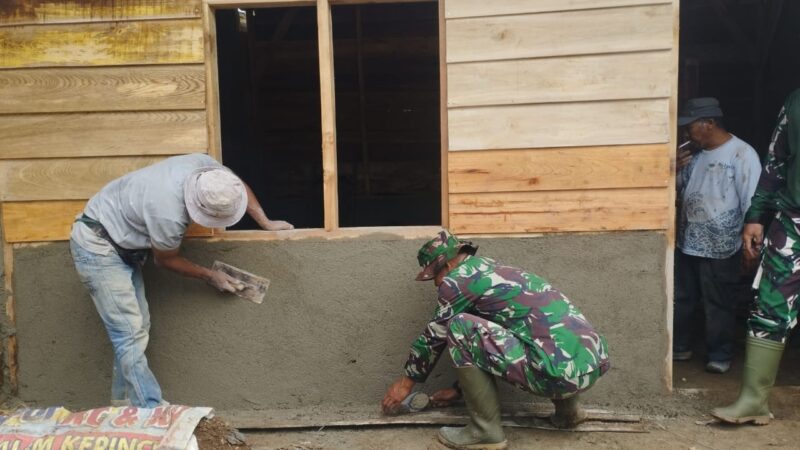 koransakti.co.id, Sungai Penuh- Satgas TNI Manunggal Membangun Desa (TMMD) ke-126 Kodim 0417/Kerinci terus menunjukkan komitmennya dalam meningkatkan kesejahteraan masyarakat. Pada pelaksanaan TMMD hari ini, Sertu Gusnitar Jaya bersama anggota Satgas melakukan pekerjaan plester rumah milik Yornel, warga Dusun Sungai Ampuh, Desa Sungai Jernih.