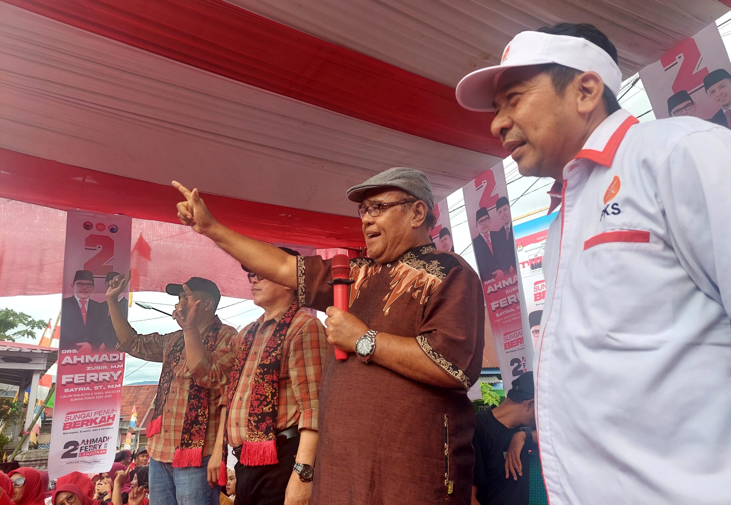 Koran Sakti.co.id, Sungai Penuh- Semakin dihujat dan difitnah, Paslon Walikota dan Wakil Walikota Sungai Penuh, Ahmadi Zubir -Ferry Satria (AZ-FER) semakin kuat dan semakin dihati masyarakat.Terbukti saat blusukan dan kampanye di desa Koto Lebu, kecamatan Pondok Tinggi, Rabu (16/10) sejumlah tokoh Sentral dan bukti sejarah pendirian kota Sungai Penuh 2008, hadir memberikan dukungan.Diantaranya PJ. Walikota Sungai Penuh Pertama, Masril ikut memberikan dukungan dan mengajak masyarakat Sungai Penuh, untuk memilih Ahmadi-Ferry. “Saya mengajak semua masyarakat kota Sungai Penuh, untuk memilih AZ-FER”, singkat Masril .Tidak kalah penting, Ardinal Salim, wakil walikota defenitif pertama, berpasangan dengan Asafri Jaya Bakri, dalam orasinya, mengakui pakta, pada 2010 Ahmadi Zubir sudah menang. Namun, karena adanya peraturan 2 Putaran.