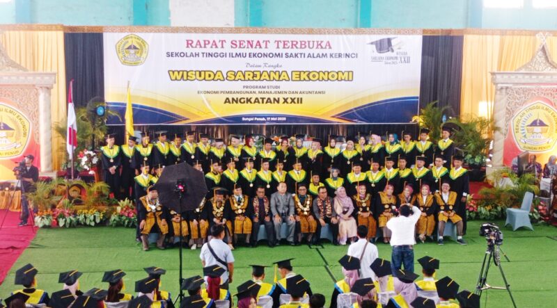 Koransakti.co.id, Sungai Penuh – Sekolah Tinggi Ilmu Ekonomi Sakti Alam Kerinci (STIE-SAK) menggelar wisuda sarjana ekonomi angkatan XXII yang bertempat di Gor Kota Sungai Penuh, Sabtu (17/05/25).
