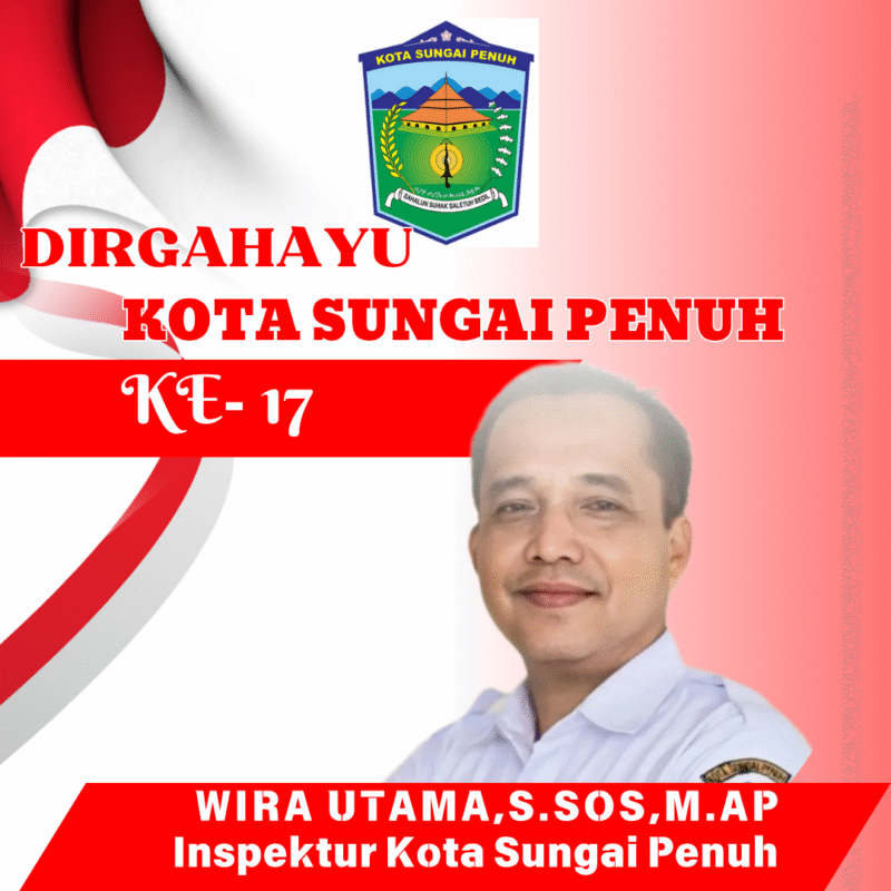 Koransakti.co.id, Sungai Penuh-Dalam momentum Hari Ulang Tahun (HUT) Ke-17 Kota Sungai Penuh, Kepala Inspektorat, Wira Utama,S.Sos.,M.AP menyampaikan ucapan selamat dan doa terbaik untuk kemajuan kota. Ia berharap Kota Sungai Penuh terus berkembang menjadi kota yang lebih maju, dan sejahtera bagi seluruh masyarakatnya.